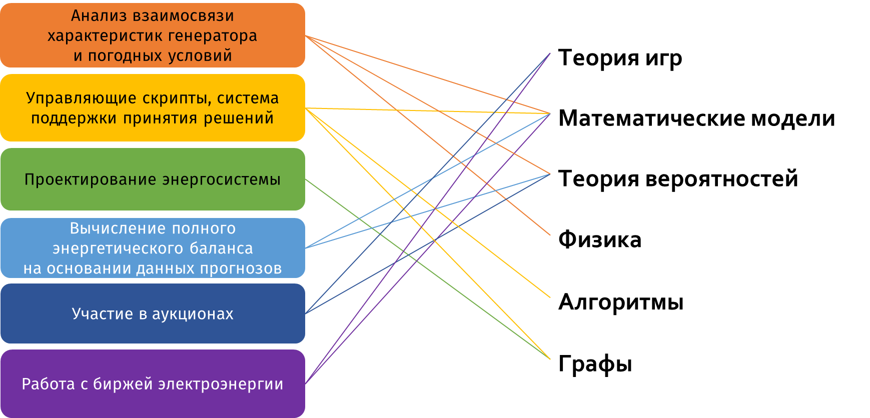 • Для решения поставленных задач в условиях временных и материальных ограничений выигрышным фактором является умение управлять сложностью, чтобы рационально построить стратегию и направлять усилия для её эффективной реализации в ключе анализа прогнозов, проектирования архитектуры энергосети и написания программного кода, гибко управляющего этой энергосетью и взаимодействующего с рынком электроэнергии.