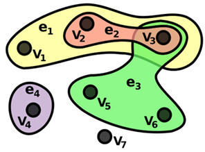 Существует такое понятие как гиперграф — это обобщение графа, в котором каждым ребром могут соединяться не только две вершины, но и любые подмножества множества вершин.