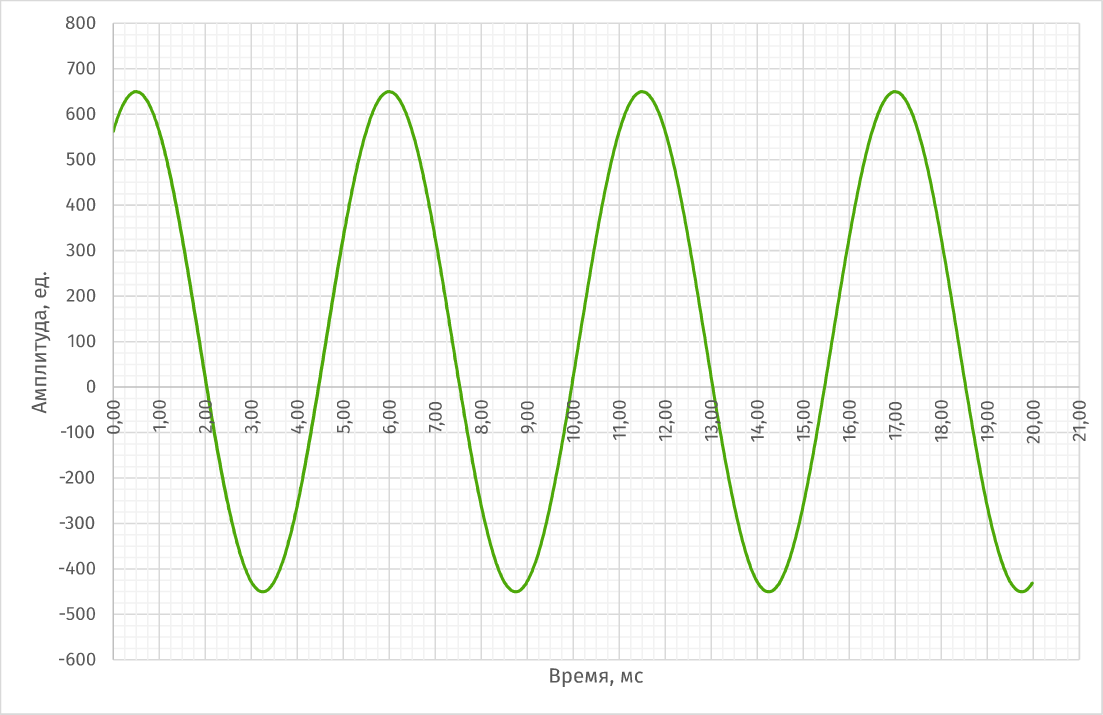 - Сколько миллисекунд длится один повтор? Напишите с точностью до деления на графике.