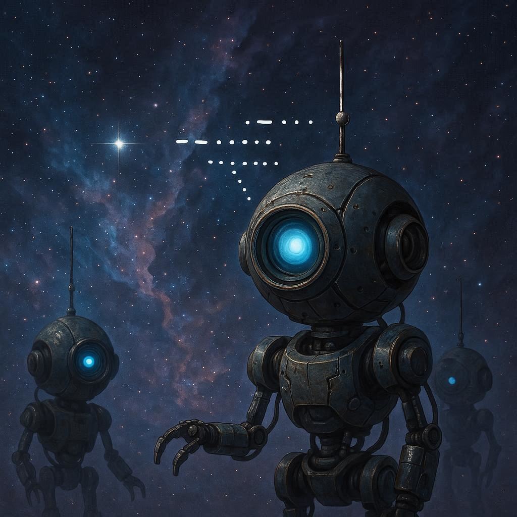 Подсказка от штурмана: короткий сигнал — точка (•), длинный — тире (–). Буквы разделяются паузами, а слова — длинными пробелами. …а вдруг это название планеты с особым мёдом?