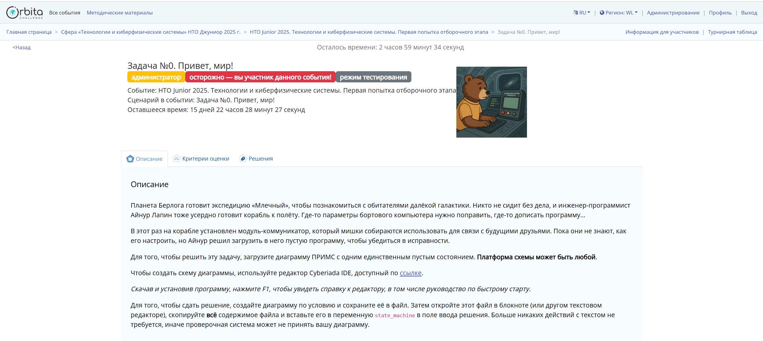 1. При переходе во вкладку с задачей открывается её описание, с которым необходимо ознакомиться.