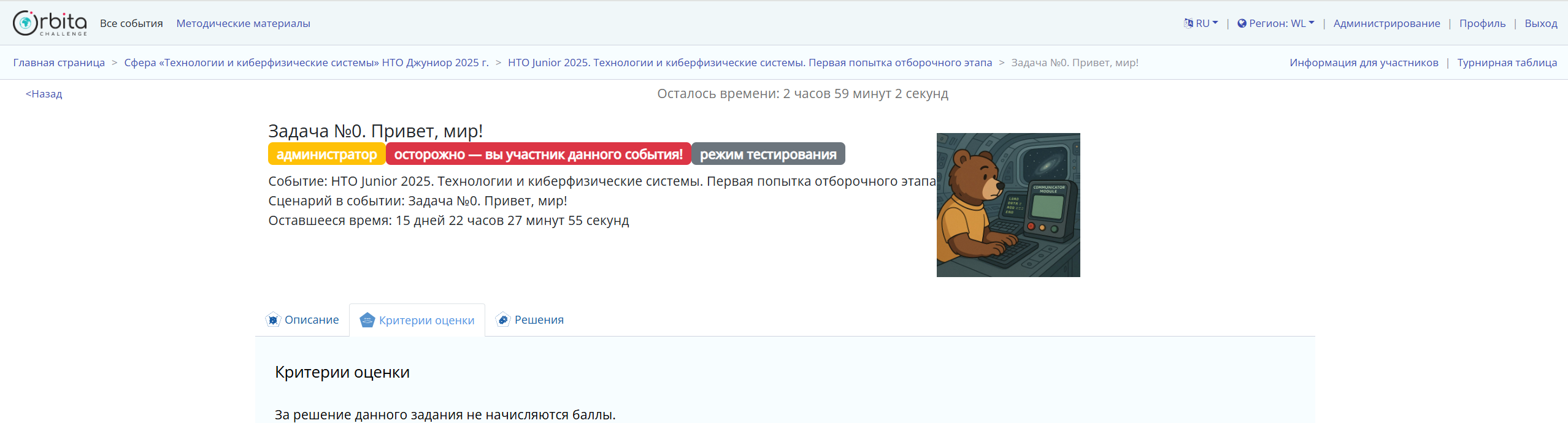 2. Во вкладке «Критерии оценки» вы сможете увидеть, сколько баллов можно набрать за задачу, если ее верно решить с первой попытки, а также количество возможных попыток её решения. Обратите внимание: за каждую попытку количество баллов будет уменьшаться.