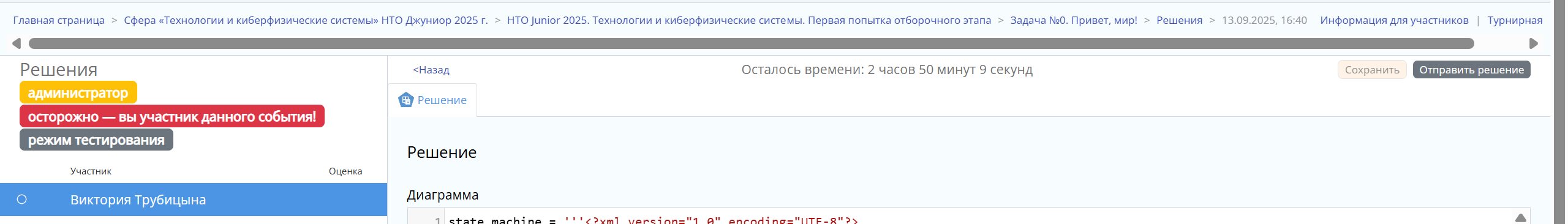 5. Нажмите кнопку «Сохранить» (после сохранения её цвет изменится), а затем — кнопку «Отправить решение»